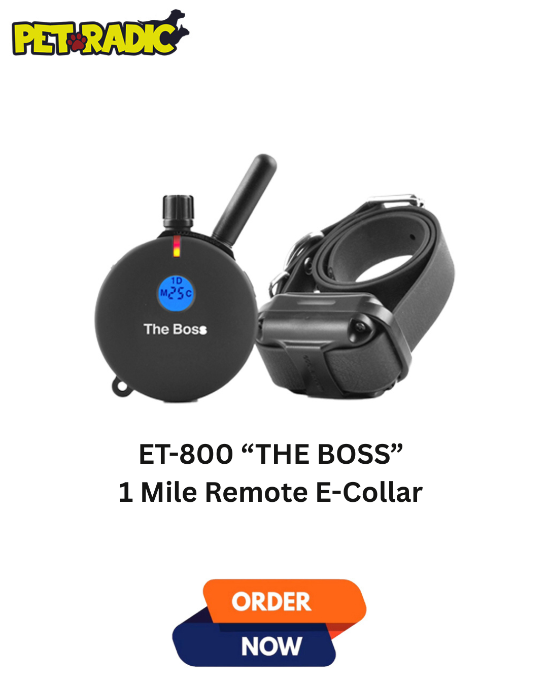 Similar to most of our dog remote training products, the ET-800 Remote E-Collar utilizes the proprietary “blunt stimulation” for superior results for low-level stimulation work. However, when high stimulation is needed, the ET-800 Remote E-Collar receiver has the highest stimulation of all the remote trainers in the full dog remote collar market. The ET-800 Remote E-Collar also has the option to choose from vibration or tone for an alternative to stimulation. We are confident that you will be satisfied with the ET-800 Remote E-Collar.